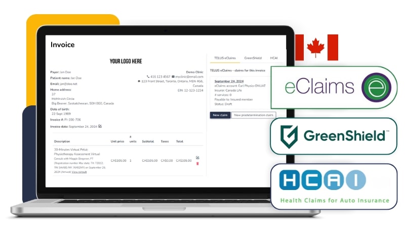 Simplify insurance claims with our Canadian direct billing capabilities. Embodia enables therapists in Canada to submit claims directly to insurance companies via TELUS eClaims, Greenshield, and HCAI, reducing paperwork and minimizing delays. View live claim statuses directly in Embodia and enjoy faster reimbursements, to yourself or the patient, with less administrative burden.