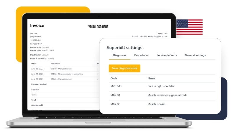 Superbills are quick and easy for US practitioners to both create and provide to their patients. Set default procedure codes for each service that you provide and adjust as needed for individual patients. Automatically copy diagnosis codes from previous Superbills. Generate Superbills with one click and send them to patients who can access, print, and save them anytime from your secure, branded patient portal.