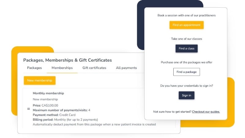 Boost patient engagement and increase revenue with package and membership options. Create and sell customized treatment packages and membership plans tailored to your patients' needs. Whether it’s for a series of sessions, pre-paid ongoing care, or a gift from a patient’s loved one, Embodia makes it easy to bill for and manage all of it. Prepaid revenue means you can focus on scaling your practice.
